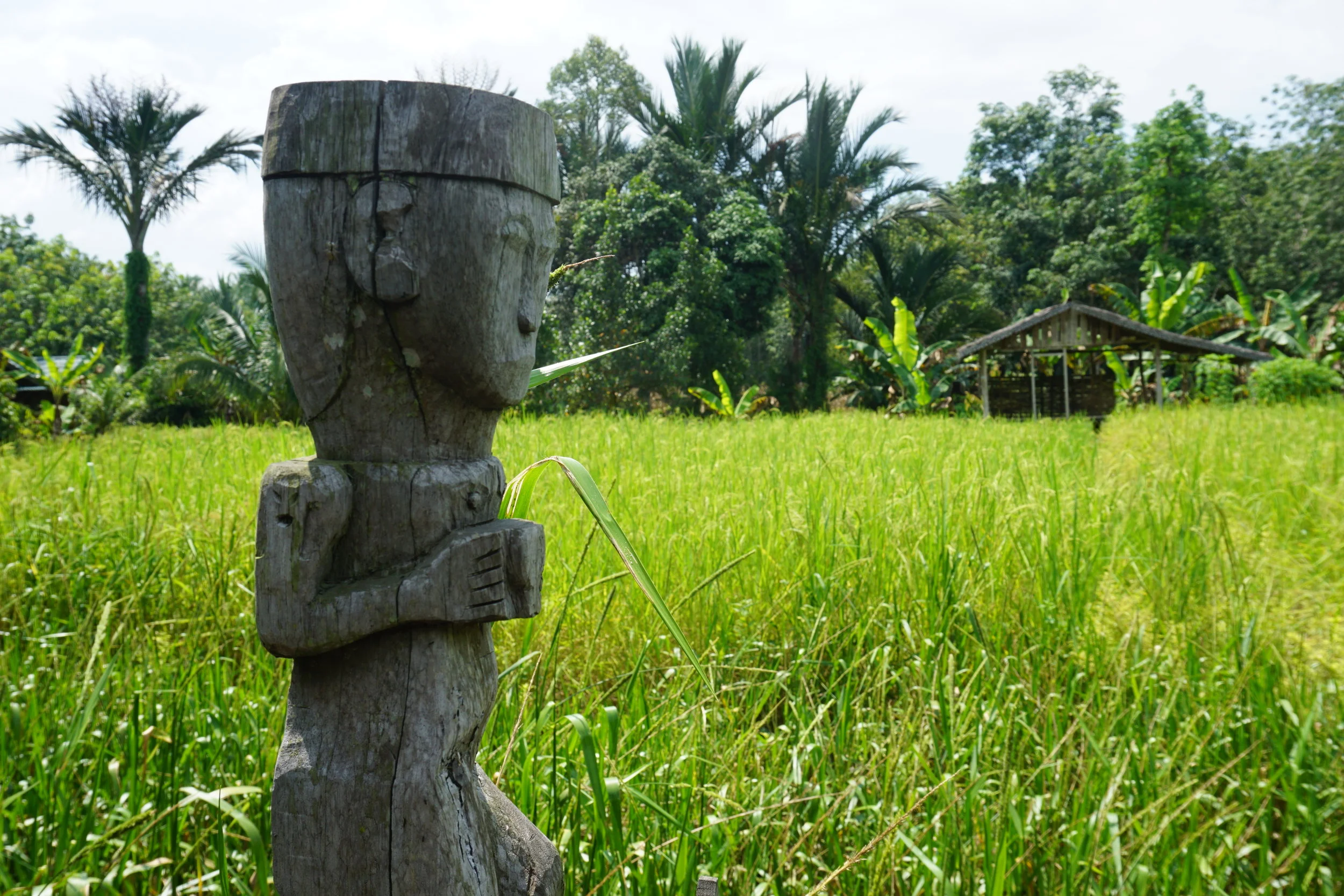 This gave me a chance to soak up the unique vibes of life in a Buddhist Dayak village. Later that night I joined Yansyah to an in-law’s house where a weekly meeting of male Buddhists was in session. Men sat on floor pillows in a spare room of dark wood, a be-robed bhikkku monk leading a chant: “Sadhu, sadhu, sadhu…” We were sprinkled with holy water before sharing in a meal of soup with squash and palm fiber.